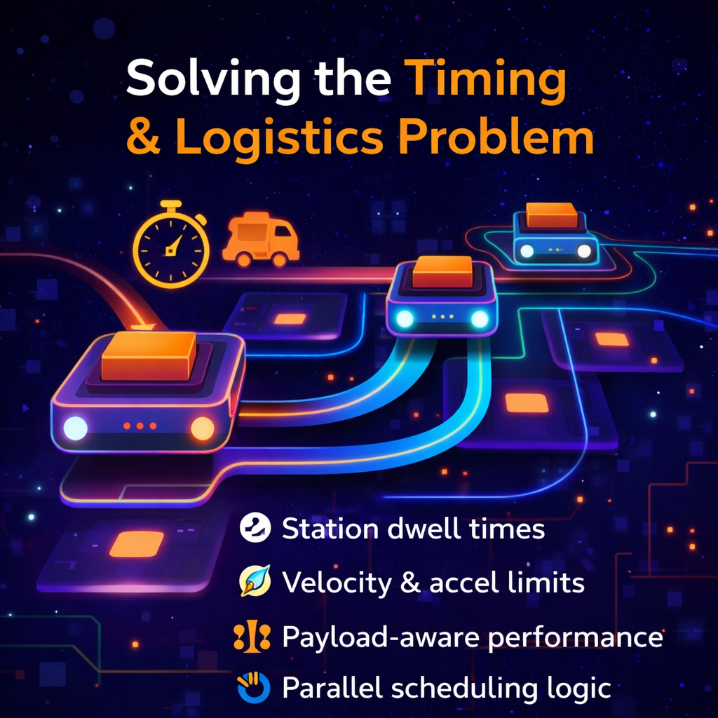 We delivered collision-free mover scenarios inside structured layouts — ideal for presales simulation, logistics validation, and throughput planning.